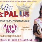 नेब्रास्का नेप्लिज सोसाइटीको आयोजना र मिस नेपाल यूएसको संरक्षणमा यही अक्टोबर १२ तारिखका दिन हुने सातौं संस्करण प्रतियोगिता नेब्रास्कामा हुने बारेमा यहाँहरु सबै जानकार नै हुनुहुन्छ ।अमेरिकामा रहेका १९ देखी २९बर्ष उमेर समुहका नेपाली युवतीहरुले प्रतियोगितामा भाग लिन पाउनेछन् । आवेदन खुल्ला भएकाले इच्छुकलाई सहभागिता जनाउन आग्रह गर्दछौं ।